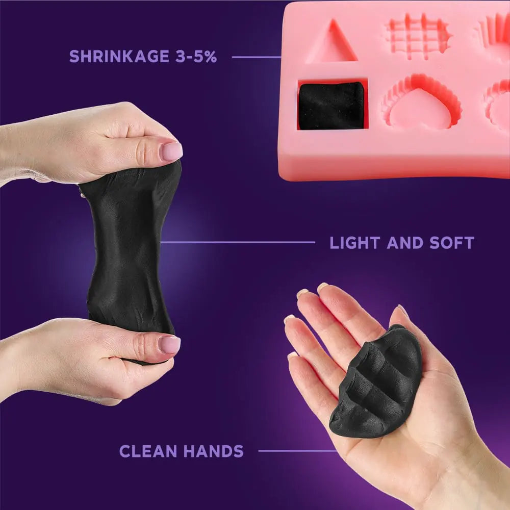Czarna glinka powietrzna w wygodnym opakowaniu sprawia, że ​​kreatywność jest prosta i ciekawa, więc nic nie ogranicza Twojej wyobraźni. Co więcej, pudełko z łatwością przekształca się w podstawkę, dzięki czemu praca twórcza staje się jeszcze wygodniejsza.