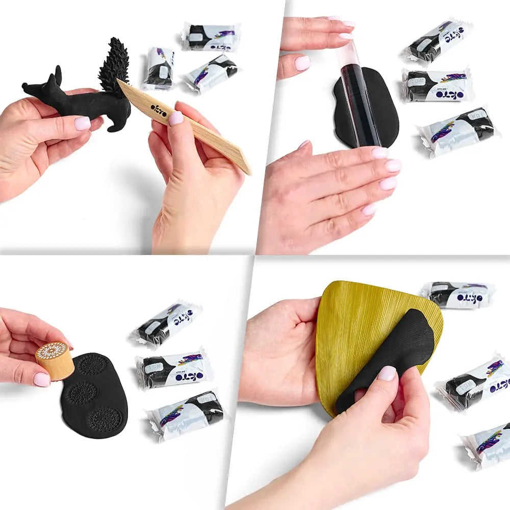 Ten zestaw pomoże Ci wcielić w życie każdy pomysł. Pracuj ze stosem, rozwałkuj go, nakładaj tekstury i używaj formy. Następnie pomaluj gotowe arcydzieła, kierując się inspiracją.