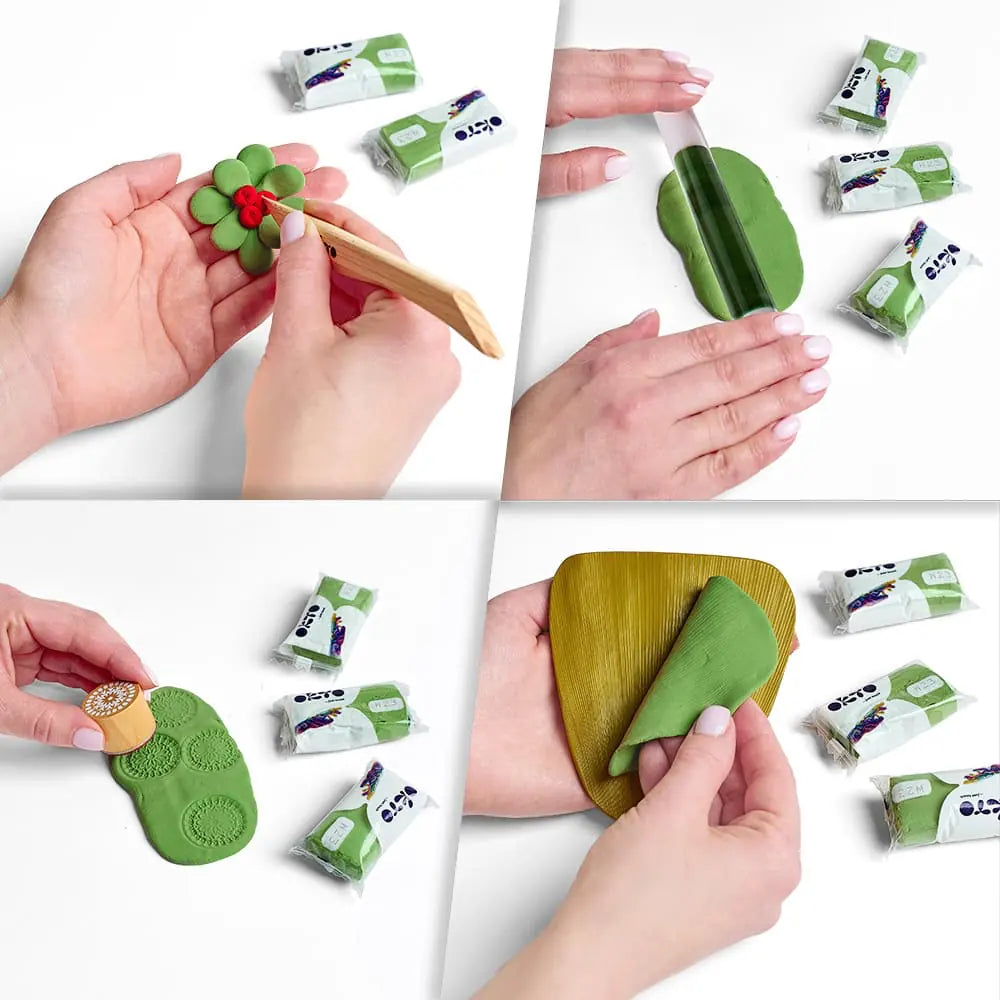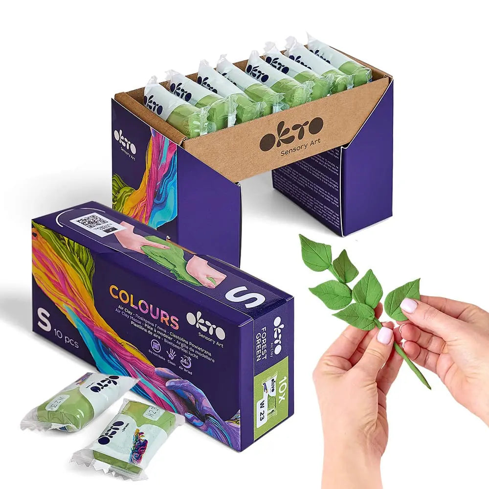 Wygodnie zapakowana glinka Air Clay z oliwkami sprawia, że ​​kreatywność staje się łatwa i przyjemna, dzięki czemu nic nie ogranicza Twojej wyobraźni. Pudełko z łatwością przekształca się w podstawkę na stół, co jeszcze bardziej ułatwia pracę twórczą.