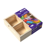 Drewniane pudełko na przybory szkolne. 4 komory.