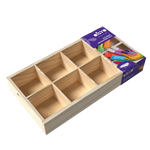 Drewniane pudełko na przybory szkolne. 8 komór.